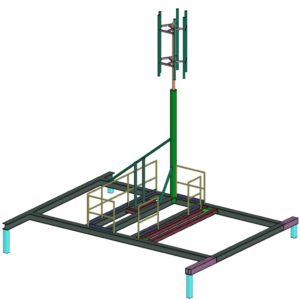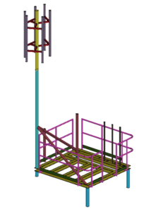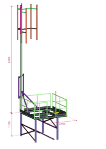 Technical opinion on the antenna supporting structure located above the elevator shaft walls. The 8.5-meter-high structure, which has antennas and equipment for two mobile network operators installed, has been reinforced by reducing the cantilevered portion of the mast and designing additional anchoring.