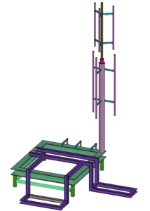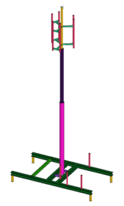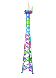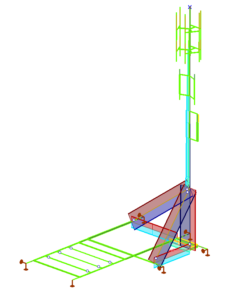 Structural analysis of the antenna supporting structure in the attic of a residential building. The lattice is embedded in masonry walls that did not provide sufficient stability, necessitating the addition of concrete blocks to stabilize the structure.