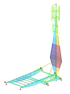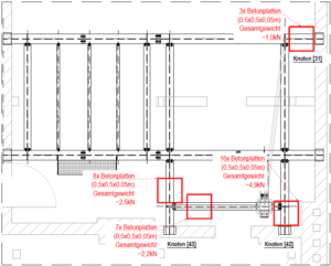 Analysis of the antenna supporting structure in the attic of a residential building in central Berlin. The structure is anchored in masonry walls, which provide its stability.